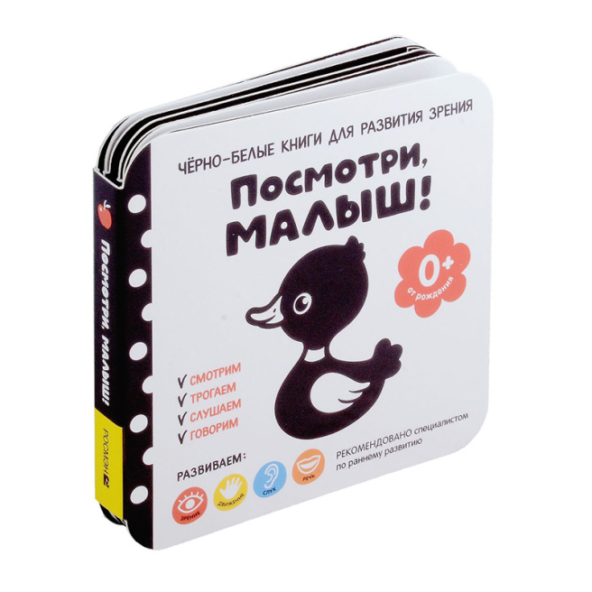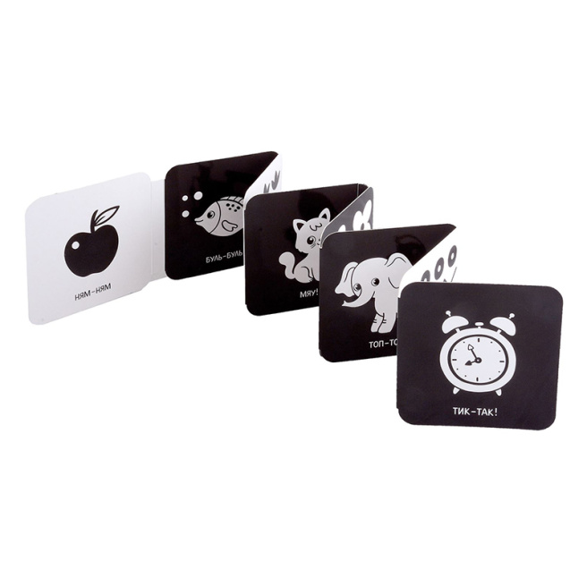 Первая книжка для раннего развития малыша! В первые 12 недель жизни малыши видят только ЧЁРНЫЙ И БЕЛЫЙ ЦВЕТА, а способность различать детали и другие краски развивается в течение следующих месяцев. Книжка-гармошка разработана специалистом по детскому развитию для детей от 0 до 3 месяцев. Чёткие, узнаваемые рисунки будут стимулировать мозг ребёнка и помогут РАЗВИТЬ ОСТРОТУ ЗРЕНИЯ, понятные слова послужат РАЗВИТИЮ РЕЧИ и ПОЗНАНИЮ ОКРУЖАЮЩЕГО МИРА. А совместные минуты игры создадут прочную связь между родителями и младенцем. Серия КНИЖЕК-ГАРМОШЕК поможет РАЗВИТЬ ЗРЕНИЕ у малыша с рождения до года! Собери ВСЮ СЕРИЮ! Уровень 1: от рождения Уровень 2: от трёх месяцев Уровень 3: от шести месяцев