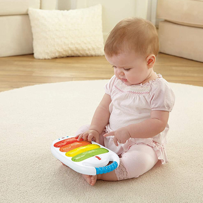 Deja din primele trei luni de viață, puteți începe să dezvoltați abilitățile muzicale ale bebelușului dvs., datorită instrumentului de dezvoltare „Xilofon colorat”. Jucăria este echipată cu efecte muzicale și luminoase. Dacă atingeți o tastă, puteți auzi un sunet, dacă atingeți câteva taste, atunci se va reda o melodie întreagă. Xilofonul are două moduri: joc și cântec. Mama poate regla aceste moduri comutând butonul lateral și, de asemenea, poate schimba volumul. Când se joacă cu o jucărie atât de grozavă, copilul dvs. va dezvolta percepția auditivă, percepția culorii, perseverența și abilitățile motrice fine. „Xilofonul colorat” este o jucărie minunată pentru tinerii muzicieni. Prezența bateriilor: nu este inclusă. Tip baterie: 3 x AA / LR6 1.5V (tip deget).