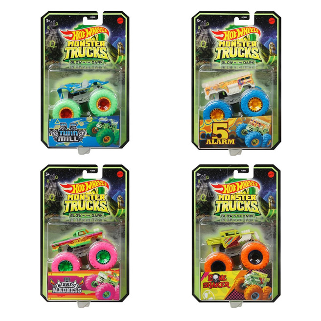 Mașinuță Monster Trucks, luminează în întuneric, în asortiment, Hot Wheels
