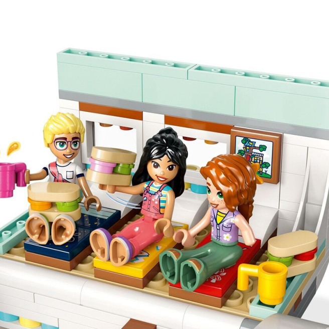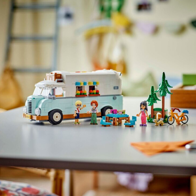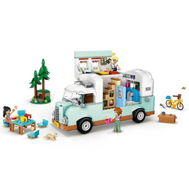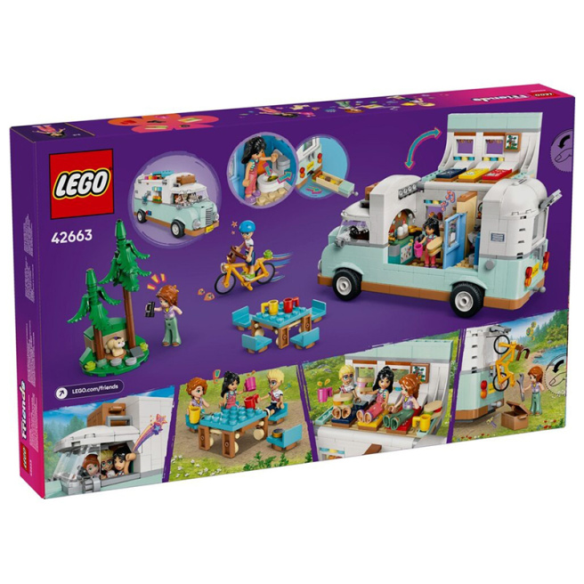 LEGO® Friendship Friendship Camper Van Adventure (42663) include o mașină de jucărie LEGO, 3 minidoll-uri și o figurină dihor.