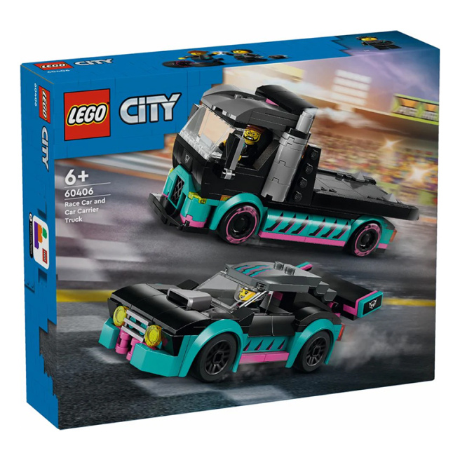 Constructor LEGO City Mașină de curse și camion de transport auto