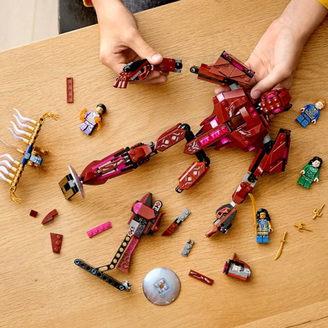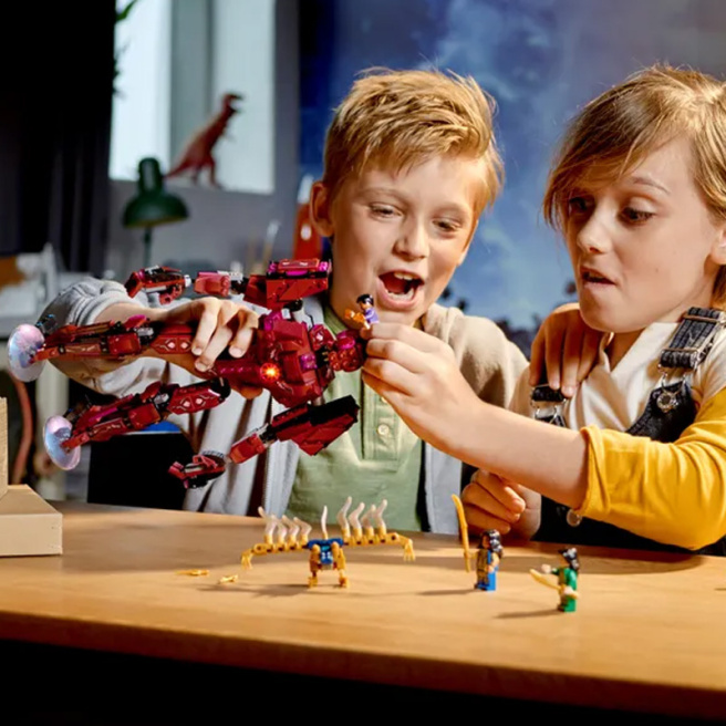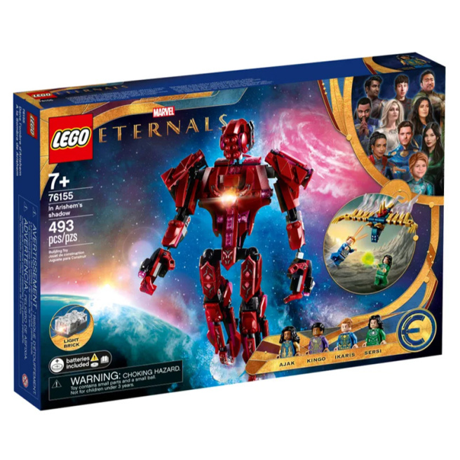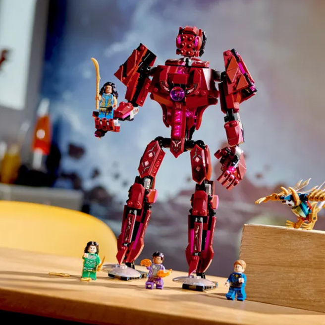 • Când Sersi, Ikaris, Kingo și Ayak se luptă cu maleficul Deviant, orice se poate întâmpla! Sersi poate transforma obiecte, Ikaris are putere supraomenească, Kingo trage energie, iar Ayak poate comunica cu cerești. Arishem, liderul cereștilor, poate chiar să se alăture bătăliei, ridicând un thorngun. Dacă colecționați minifigurine LEGO®, Ayak și Kingo sunt disponibile doar în acest set uimitor.