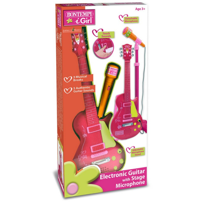 Simțiți-vă ca o adevărată vedetă rock cu această chitară cu un microfon super drăguț de la producătorul italian Bontempi. Chitara are șase corzi metalice, o curea de umăr și un microfon reglabil pe înălțime. Cu o varietate de sunete rock și cinci demo-uri, puteți susține cu siguranță un spectacol.