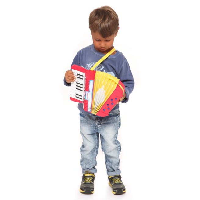 Acest acordeon are 17 taste, inclusiv dispozitive ascuțite și 6 butoane pentru bas. Curea de umăr inclusă, astfel încât să puteți juca din mers. Brandul italian Bontempi consideră că toți copiii ar trebui să poată aduce lumea magică a muzicii, a jocului și a învățării în viața lor cu produse de cea mai înaltă calitate.