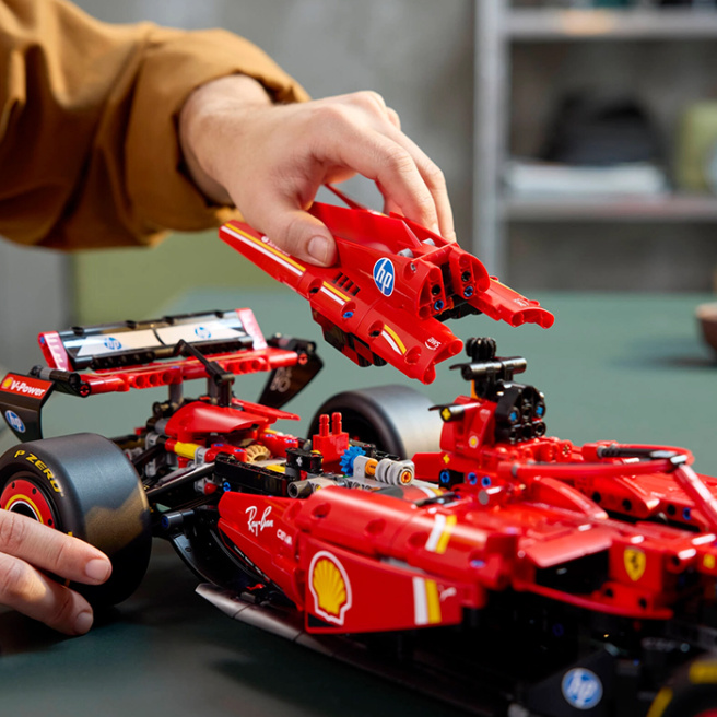 • Experimentează emoția circuitului de curse construindu-ți propria mașină de Formula 1 cu setul LEGO Technic F1 Ferrari SF-24 Race Car pentru adulți (42207). Acest set va fi un cadou minunat pentru pasionații de sporturi cu motor. Acesta oferă un proiect fascinant de asamblare a unui model realist la scara 1:8 al unei mașini F1.