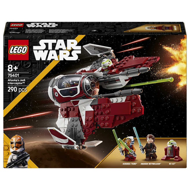 Lasă-i pe copii să-și creeze propriile aventuri captivante în Star Wars: Războiul Clonelor cu constructorul Ahsoka Jedi Starfighter Interceptor. Acest constructor prefabricat de zaruri Jedi Interceptor este un cadou LEGO Star Wars minunat pentru băieți, fete și fani cu vârste de la 8 ani în sus. Are o carlingă care se deschide, aripi reglabile pentru modurile atac și croazieră și două trăgătoare cu arc. Setul de joacă prefabricat include două minifigurine LEGO Star Wars, Ahsoka Tano și Anakin Skywalker cu săbii laser, și o figurină droid LEGO R7-A7 pentru jocul de fantezie. Ahsoka poate fi plasată în cabina de pilotaj a Interceptorului Jedi, iar la bord există loc pentru R7-A7 și spațiu de depozitare pentru săbiile laser ale lui Ahsoka.