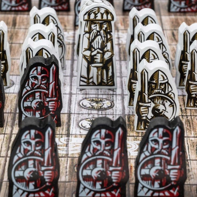 Poți să joci Tuffle ca la Vikingi? În acest vechi joc scandinav, doi jucători se confruntă pentru a ataca și, respectiv, apăra regele. Atacatorii se aliniază de-a lungul părților laterale ale terenului de joc, în timp ce regele și armata sa rămân în mijloc. Va reuși regele să scape sau vor câștiga atacatorii? Jocul conține piese originale din lemn și este o versiune medievală a jocului Hnefatafl. Acesta este un joc clasic cu posibilități infinite!