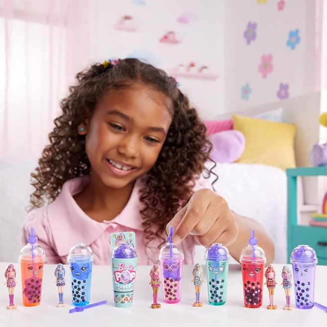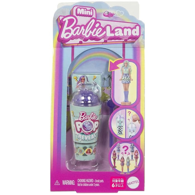 Войдите в мир кукол Барби с Mini BarbieLand - местом для больших фантазий и мечтаний в Mini! Мини-куклы BarbieLand Pop Reveal - это невероятно милая упаковка и маленький сюрприз. Открутите крышку мини-стаканчика и проткните сенсорный состав соломинкой, чтобы получить удовольствие от хлюпанья. Снимите состав, чтобы открыть мини-куклу Barbie!