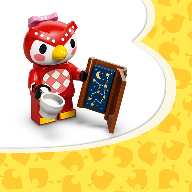 Очаровательная минифигурка — сова Селеста из серии Animal Crossing™ вдохновит детей на воображаемые истории, а драгоценные звездные фрагменты добавят игре яркости. Модульные базовые пластины позволяют менять внешний вид сцены, создавая новые варианты для игр. Юные исследователи могут загадывать желания на падающие звезды, собирать фрагменты и украшать кресло в виде полумесяца.
